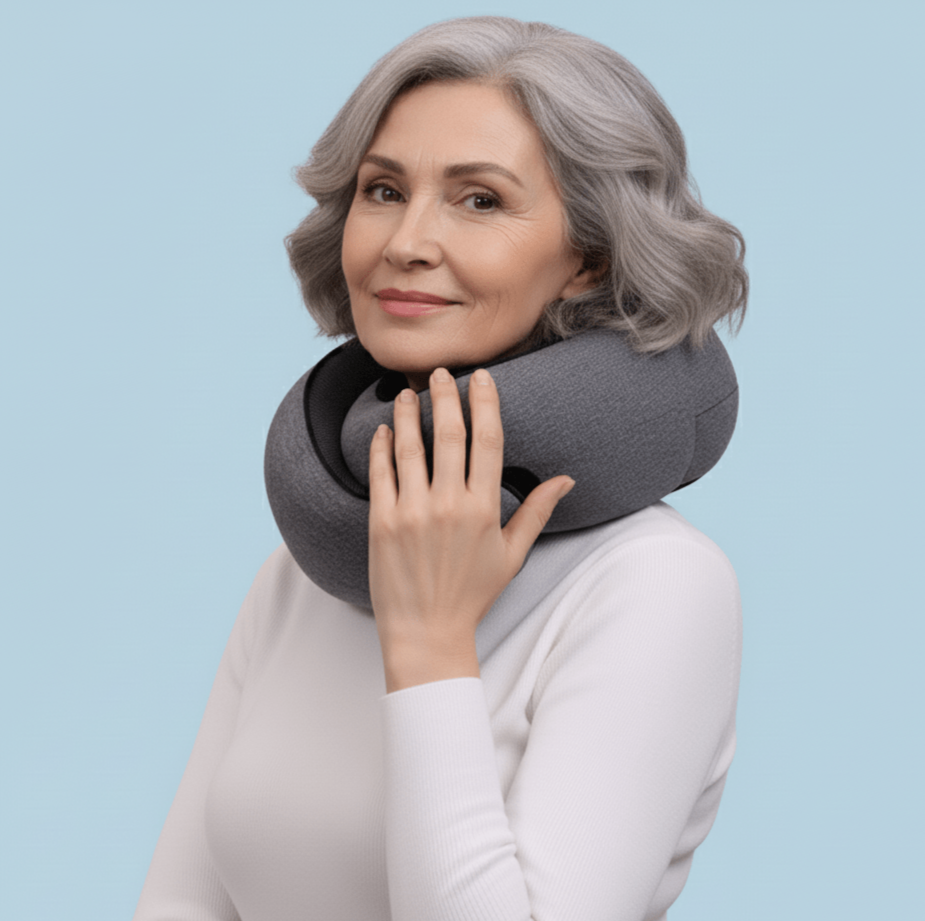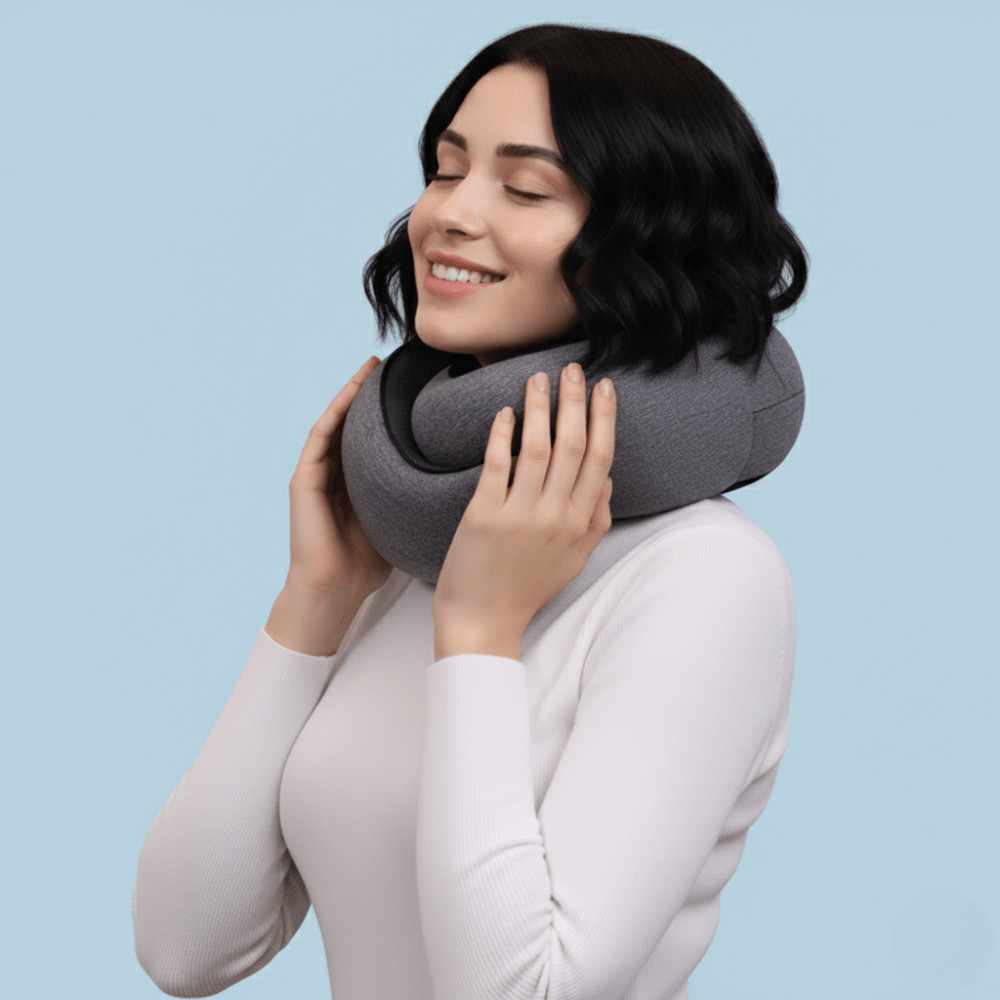 הכרית הזאת היא הראשונה שבאמת נוחה לי. סוף־סוף אפשר באמת להירדם במטוס בלי שהראש נופל כל שנייה ובלי לקום עם צוואר תפוס.